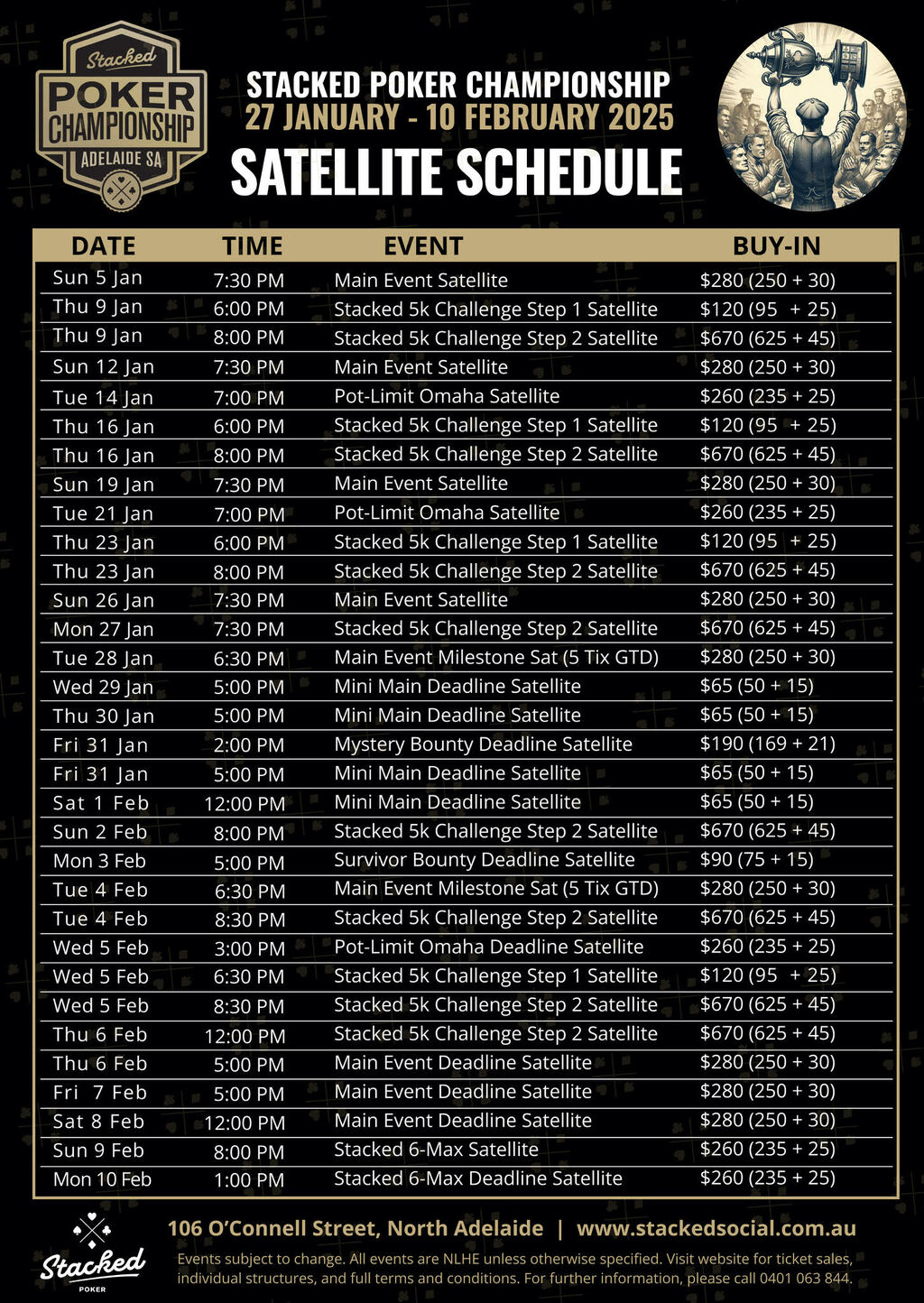 The satellite schedule for the event has been released, offering players the chance to win entry into the main tournaments through smaller buy-ins.