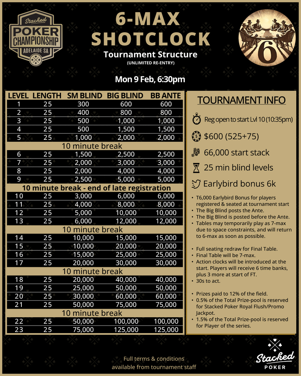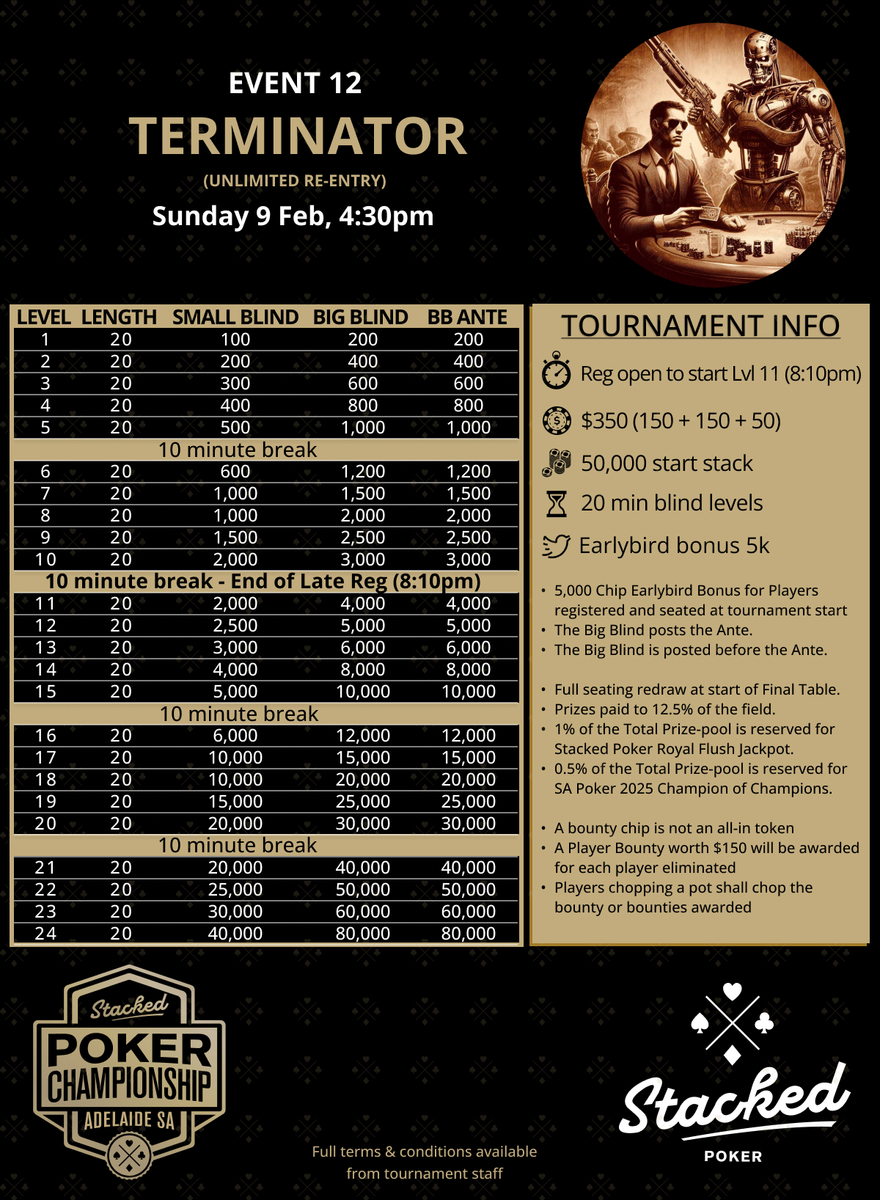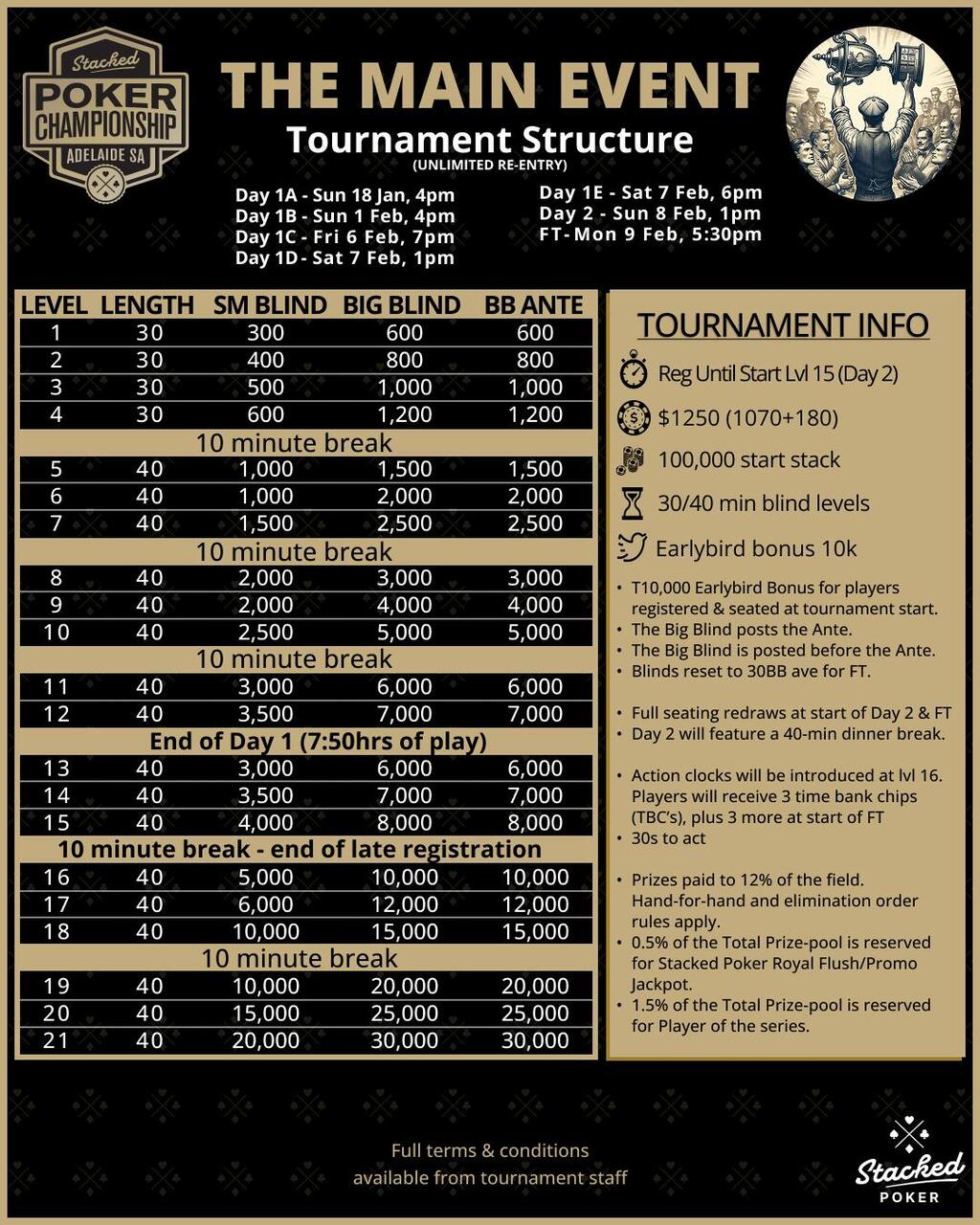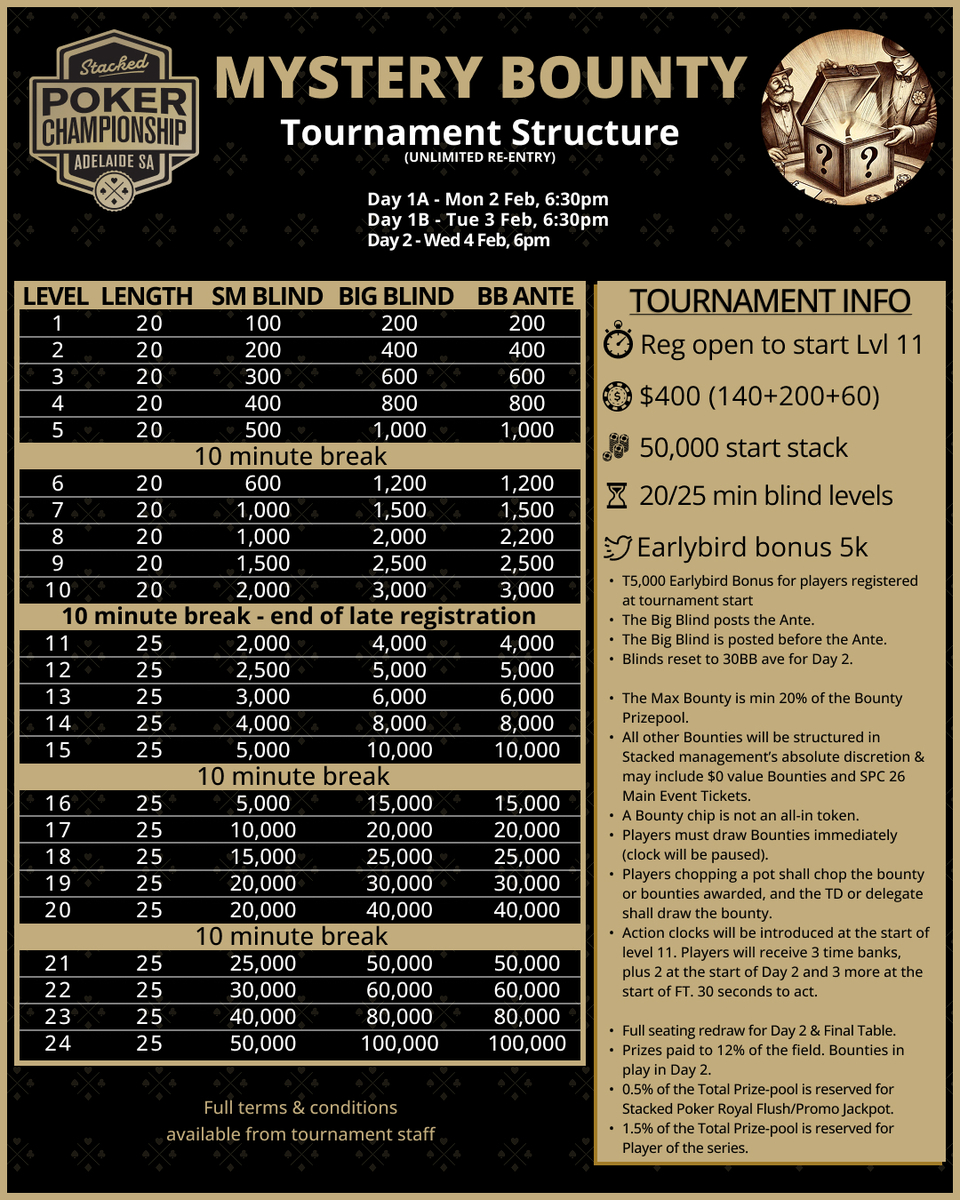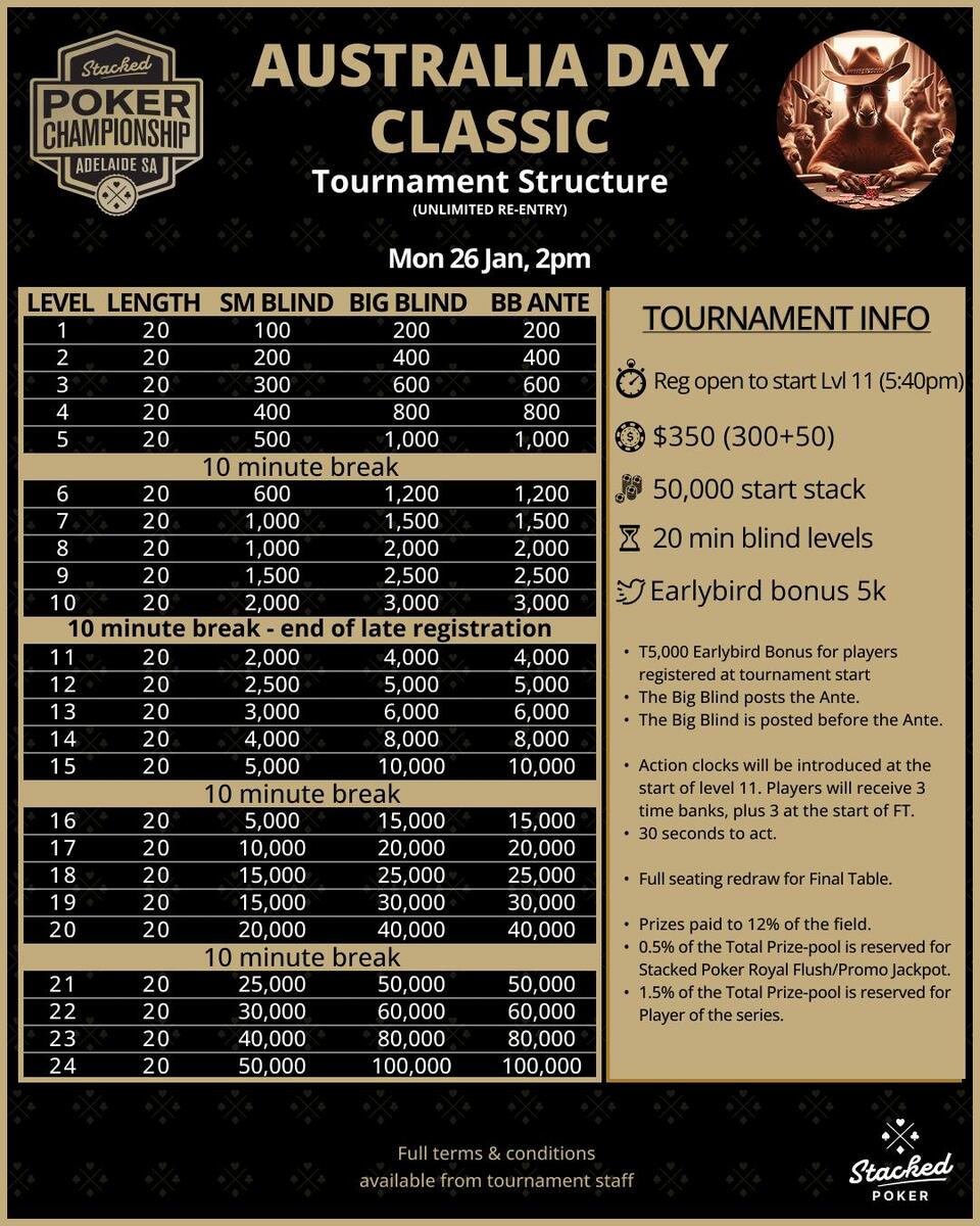 Mark your calendars for 16–29 October 2024 as the Stacked Poker Championship returns for 14 thrilling days of unforgettable gaming. Experience the excitement of the Aussie Opener, challenge yourself in the Stacked Staged Shootout, and showcase your strategy in the Chairman’s 7-Deuce Showdown and Survivor Bounty. Don’t miss out on this highly anticipated event!